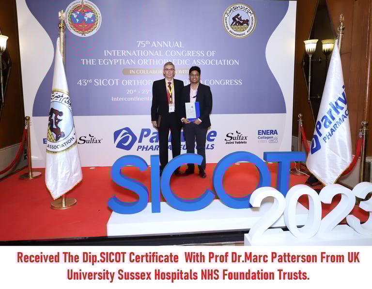 He has passed the Diploma SICOT Examinations which is an Internationally Recognised Orthopedic Course conducted by the SICOT International Orthopedic Association.